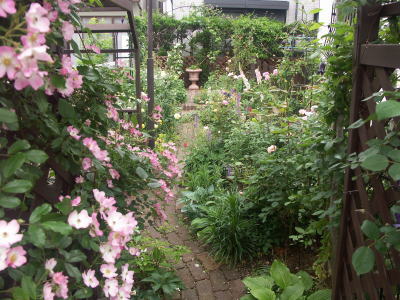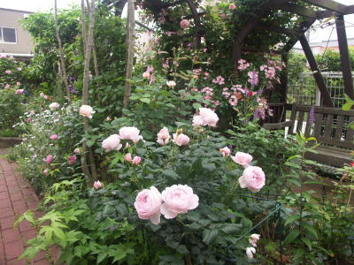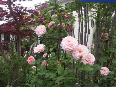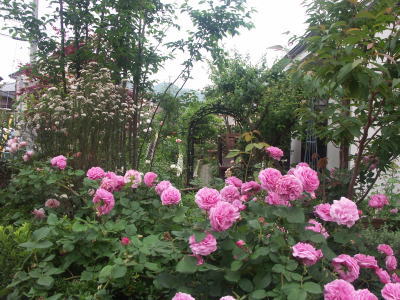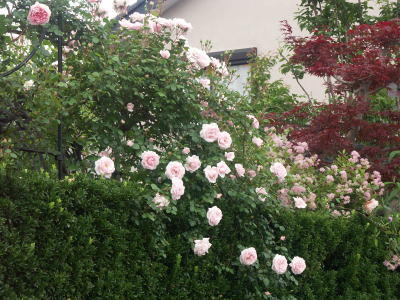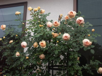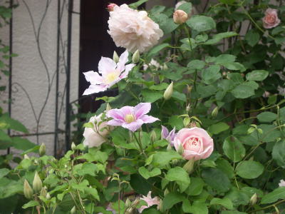 ![]() | 玄関近くの様子です ルイーズオディエは まだまだ咲いてます ベルストーリーは 生垣から覗く所のお花が 咲くようになりました クレマチス ビルドリオンも 咲き始めました |