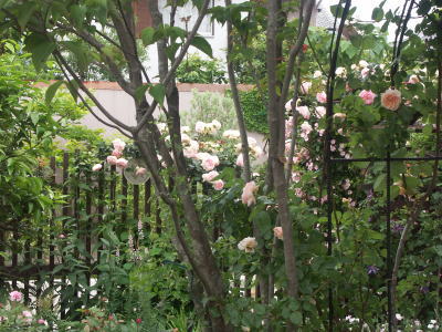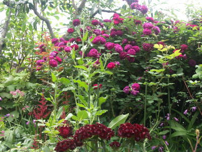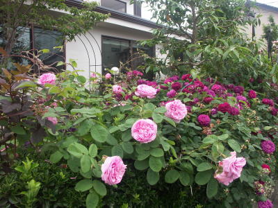 ![]() | ジプシーボーイは 日当たりの良い 生垣の外側から 咲き始めていたのですが 内側の庭も満開を迎えました 華やかな色です 咲き始めの色は鮮やかですが 翌日は地味な色になります 私はその色が好きです 足元の小花も 賑やかになってきました ナデシコ アスチルベ アストランティア‥ 外側は 隣のシャポードナポレオンも 咲き始めました |