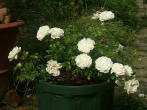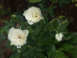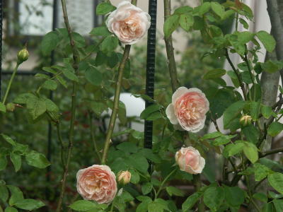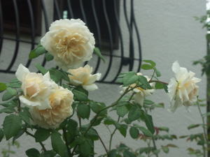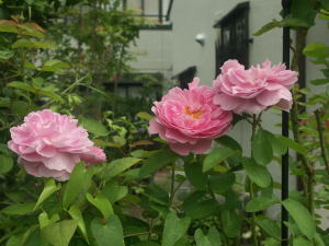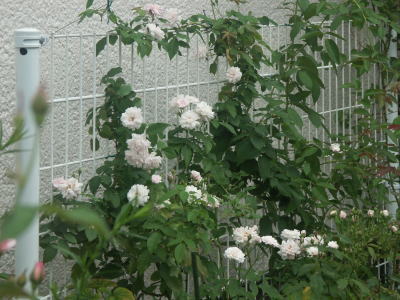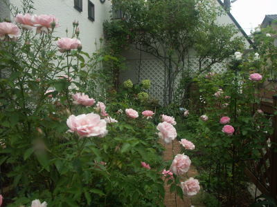 | きれいに咲くメアリーローズですが 南のほうを向くので 庭からはお尻ばかりが見えます 可愛い後姿だから許せます 道路からは きれいな顔が見えます | ![]() |