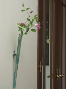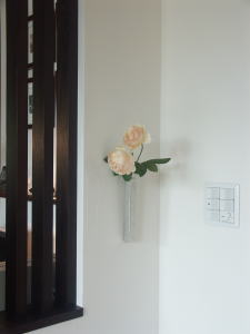 リフォームをする時の希望で玄関の壁とPCデスクの袖壁に一輪挿しをつけました