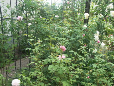| キッチンガーデンに入るアーチは 踊場がきれいに咲いています | ![]() |