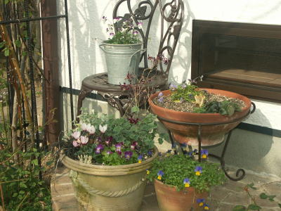 庭が寂しくなるので鉢に植えたビオラが暖かな感じがする