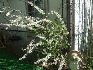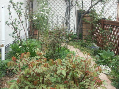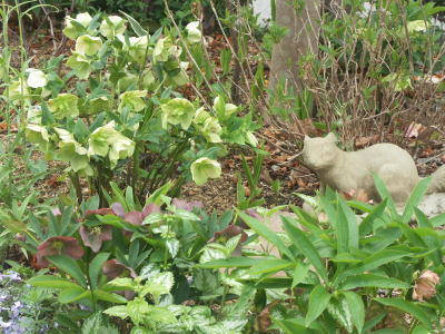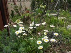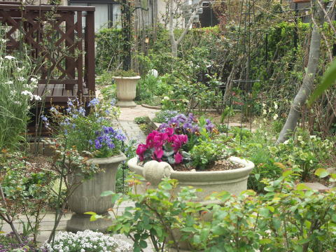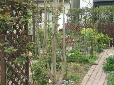 殺風景な庭が少しづつ違う緑色に彩られ美しい庭に変わってきました