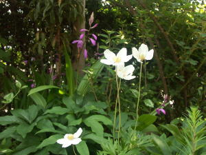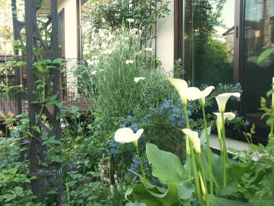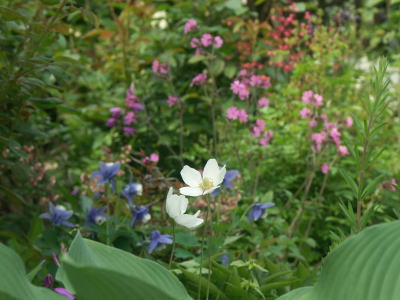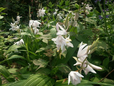 | 白のシラン ギボウシのホワイトクリスマス 山アジサイの伊予の薄墨 プラテンシスラプソディインブルー‥ 華やかさはないけれど ホッとする色合わせです この季節 楽しみな場所です | ![]() |