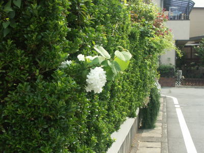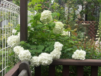 | 垣根から大でまりがのぞいてます もうすぐジプシーボーイの花や バイカウツギの花が咲き 華やかになります | ![]() |