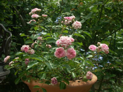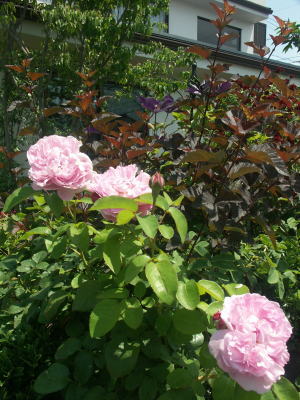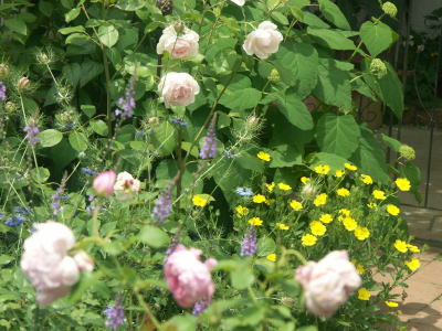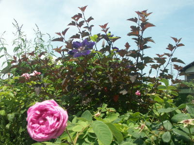 バラは一番花の後の剪定を終え、シュートの先の花がポツポツ咲いています