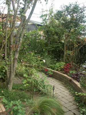 ![]() | 西側の庭です バーゴラ前は日陰なので ギボウシを植えています |