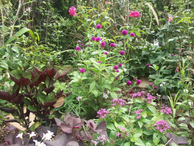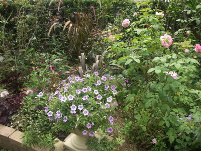 ![]() | 赤を意識したコーナーですが なかなか思うようになりません 一年を通してきれいに色を 感じさせるのが難しいです 秋は銅葉を使って 赤とあわせてみました 千日紅をアクセントに! ほんとうは赤いバラが ポイントになってくれれば 一番良いのだけれど シェークスピア2000も ツーヤンフェーウも ザ・プリンスも なかなか良い株になってくれず 課題の多いコーナーです 銅葉はコリウス ペニセタウムパープレア オキザリス ‥です |