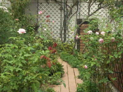 ![]() | 玄関横の小道から 曲がって デッキ横の小道を見たところ |