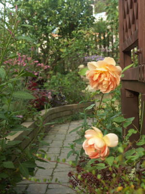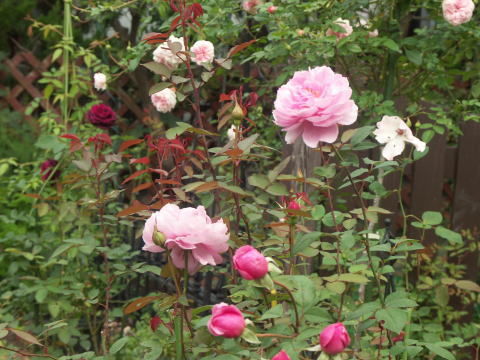![]() | フランシーヌオースチン ウイリアムモーリス こんな風に咲いて欲しくて 隣同士に植えました 念願かなって いっしょに咲いてくれました |
