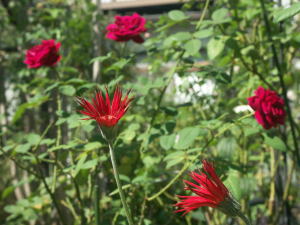 ![]() | スクワイヤーから見たところです この季節は赤バラが好き! ガーベラといっしょも なかなかいいです 向うに見えるコリウスとも お似合いです |