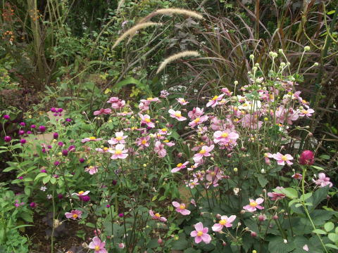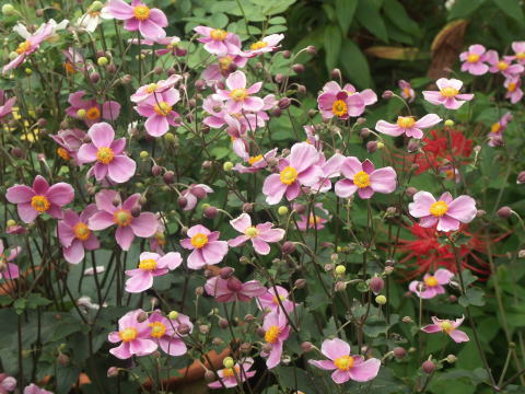 薄いピンク色のシュウメイキクです