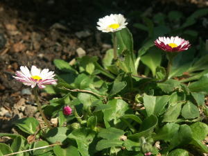 ![]() | イングリッシュデージー こぼれ種で増えて 思いがけないところでも咲いてくれる 寒くて お花が少ない時に咲いてくれる 可憐に見えるけれど 逞しい 野性的に見えるところが 気に入っている どんなお花が隣にきても じゃまにならない 上から 白、薄いブルー、ピンク |