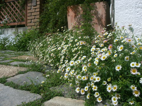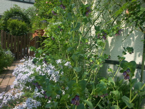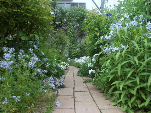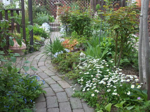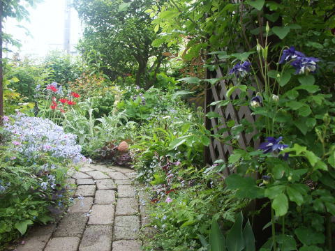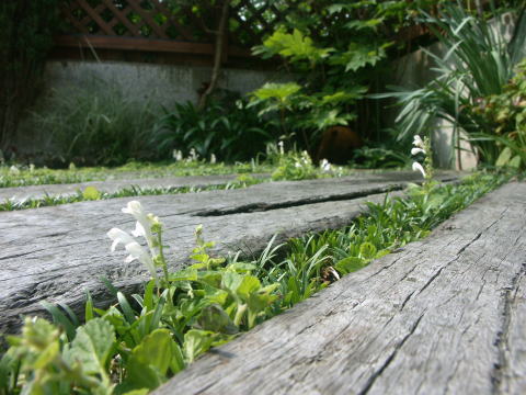 ![]() 駐車場の枕木の間にはタツナミソウ、エリゲロンなどいろんなお花のこぼれ種が… |