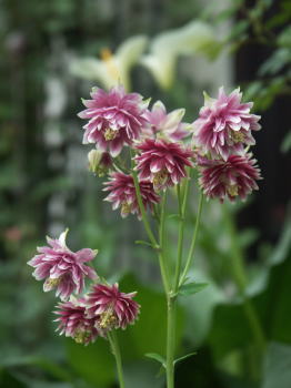 ![]() | 西洋オダマキも数年前から魅かれている花です フリフリの花びらがとってもかわいいの どの花の近くでも邪魔しません こぼれ種ででも顔を出す色もあります 一番増えるのは紫と白の二色タワー咲きです |