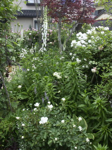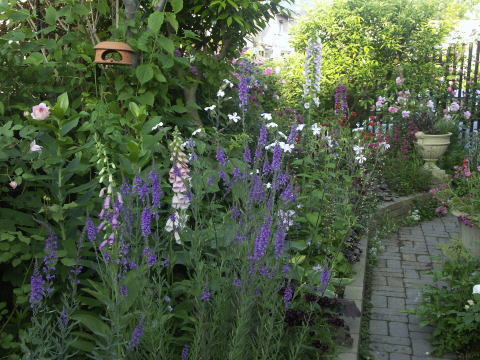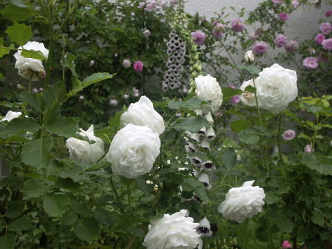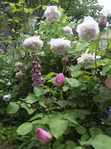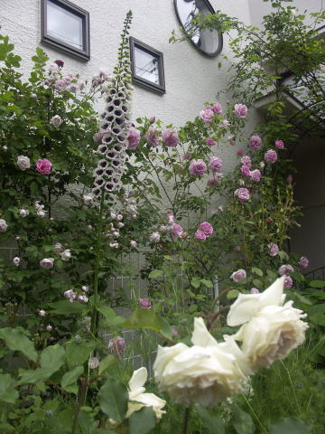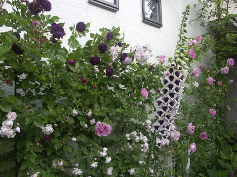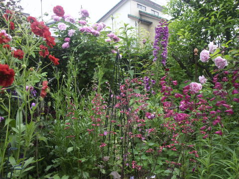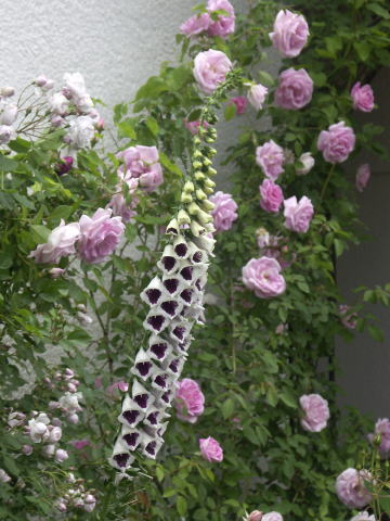 ![]() バーゴラの前のギボウシの後ろにジキタリスタプシーが咲きました | |