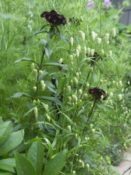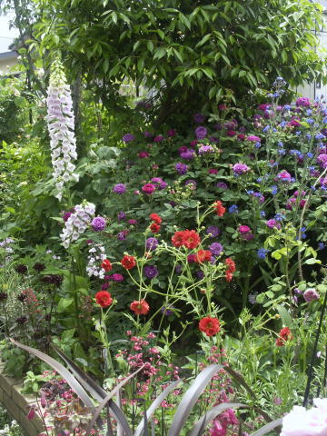 ![]() 小判草、ナデシコブラックベア | やさしい色合いの多い玄関横の小道でしたが 一季咲きのブルーマジェンタが大きくなり 色が混ざるようになりました 昨年とはちょっと感じが変わりました |