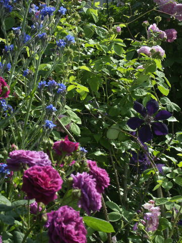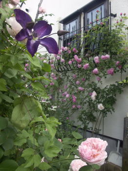 ![]() クレマチス ミケリテ | ところどころ、クレマチスが咲き始めています バラと合わさったところはお互いひきたてています 毎年、同じように咲かないので これもどんなふうに咲くか楽しみの一つです |