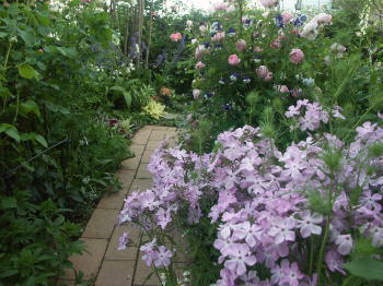 ![]() ベルストーリーとクレマチス ビルドリオン | ![]() 手前のピンクの花はフロックスピロサ |