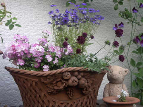 ![]() 鉢の中はレンゲローズ、ブラキカム、、クナウティア マケドニカ | ![]() ジェームズ ヴィッチ |