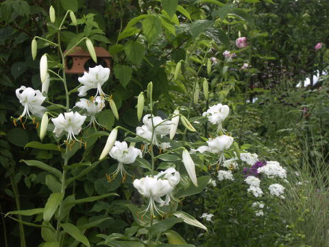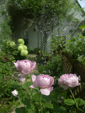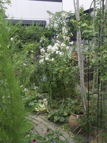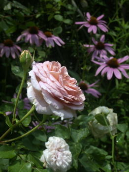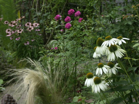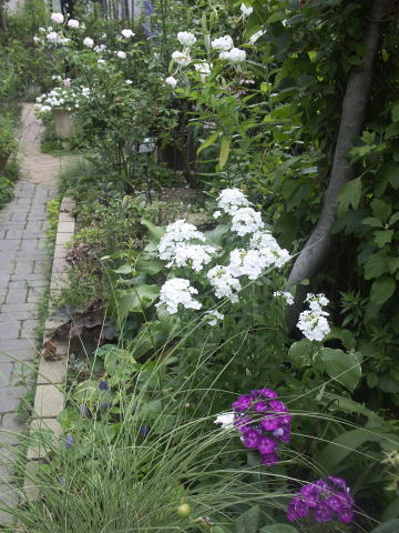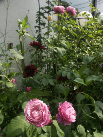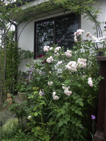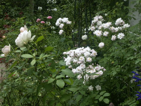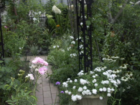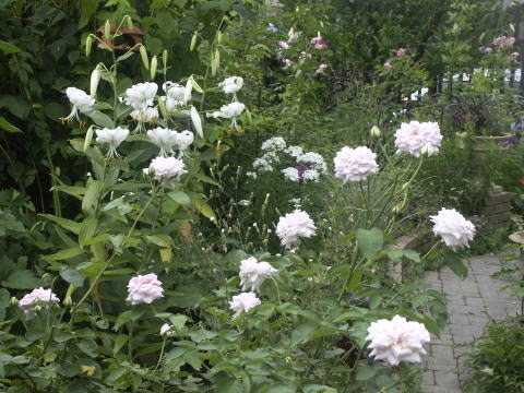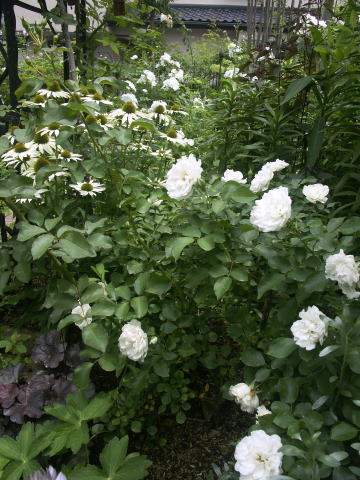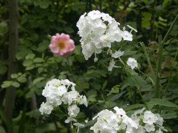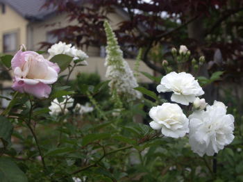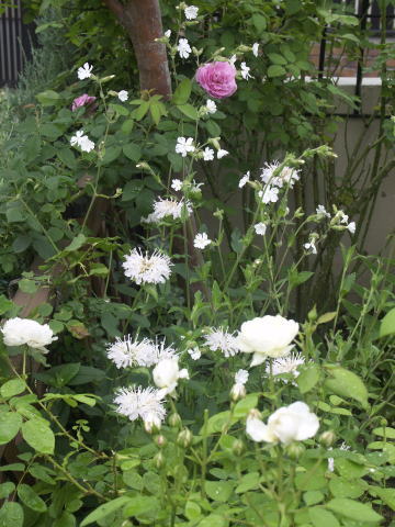 ![]() ピンクに花はルイーズオディエ白いバラはグラミスキャッスルです シレネの白花にモナルダの白花が加わってちょっと涼しげです | |