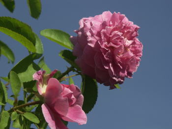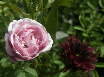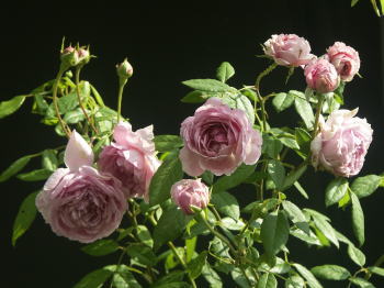 シャンテロゼミサト(日本名) Soeur Emmanuelle & ダリア黒蝶 お気に入りのバラのひとつです 濃い色の蕾が開くとやさしいピンク色です 香りはよくスリムな樹形 | |