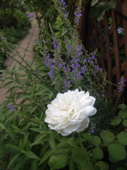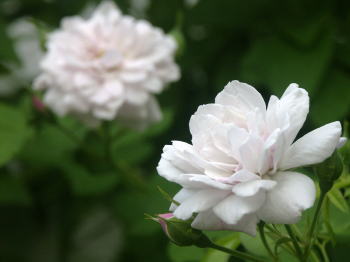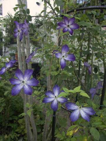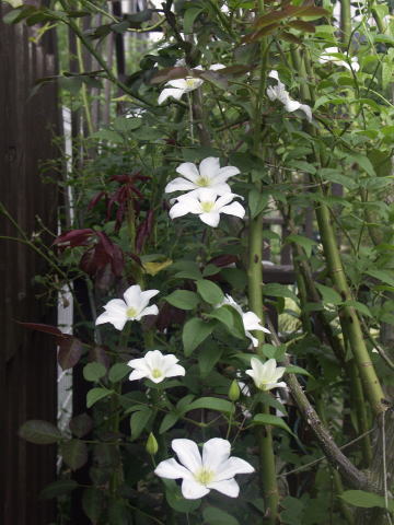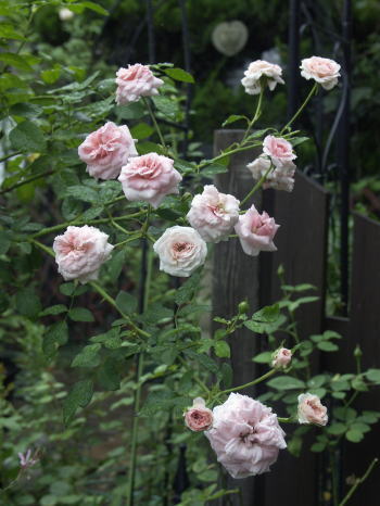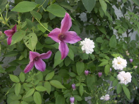![]() バラはブラッシュノアゼット、クレマチスはダッチェス・オブ・アルバニー&這沢 | ![]() テキセンシス系 這沢 |