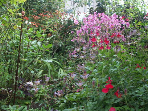 ![]() 玄関横の小道 ![]() 白の秋明菊が満開! ![]() ノコンギクがあちらこちらで咲いてます 秋ですね~ ![]() こぼれ種のピンクのケイトウ ![]() ジプシーボーイのローズヒップ&ダリア・バルバロッサ ダリアだけだったら絶対選ばない色です ローズヒップには似合うかしら… ![]() ホトトギスと秋明菊 “秋”ですね ![]() ペンタスの赤 これも以前は選ばなかった! ピンクや白に手が行きましたが今年はなぜか魅力的に見えました 銅葉に似合うかな… そんな風に好みが変化するのも楽しいです ![]() クレマチス ジャックマニー系 アラーナ ![]() 板塀の前をリニューアルしました 小道の位置を変え、レンガの小道にしました ![]() 薄いピンク色の秋明菊 秋明菊の中で一番ののっぽさんです ![]() 西側の庭のようすです ![]() ヘレニウム オータムロリポップ&ダリア ホンカ |