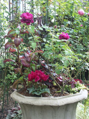 ![]() ![]() ジェームズヴィッチと草花の寄せ植え | |