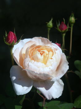 マダムブラヴィの花びらの質感が大好きです それから咲き始めの中心がほんのり桜色になるところも大のお気に入り しばらくすると白花になります 花持ちがとても良い所もうれしいな! | |