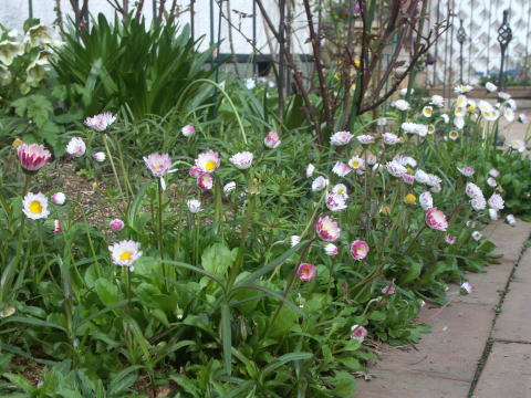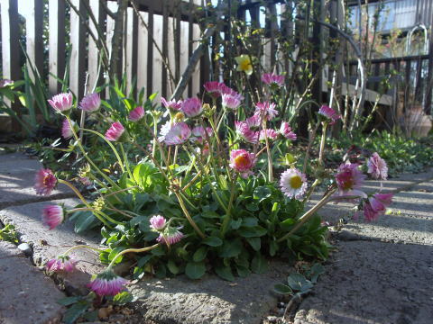 ![]() ピンクのイングリッシュデージー だいぶ間引いてしまいましたがきれいな色は来年の種を落としてもらいたくて残してあります | |
