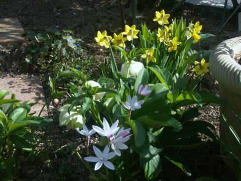 ![]() ミニスイセンの黄色が加わると暖かくなったような気がします 春の黄色は良いものです | |