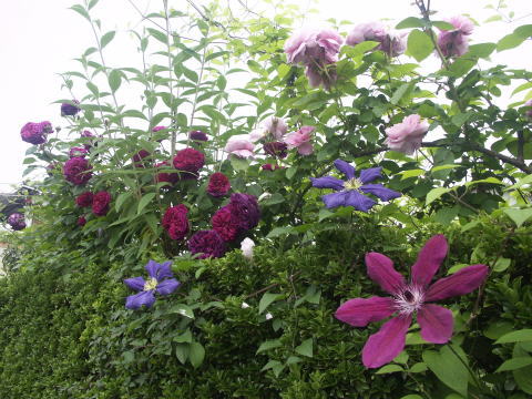 ![]() | 梅の木に絡めてある ハルガスミの花数が増えてきました 隣のERロードリーオベロンが 咲き始めました 大きな花なので 重そうです |