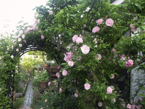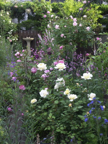 ![]() ![]() ![]() グラニー | クリーム色のバラは ER クロッカスローズ ブルーの花は アンチューサ ドロップモア スタンダードはグラニー 一番奥のアーチは ER フランシーヌオースチン ER ウイリアムモーリス 反対側は フランスのバラ シャルタンメロー ![]() シャルタンメロー |