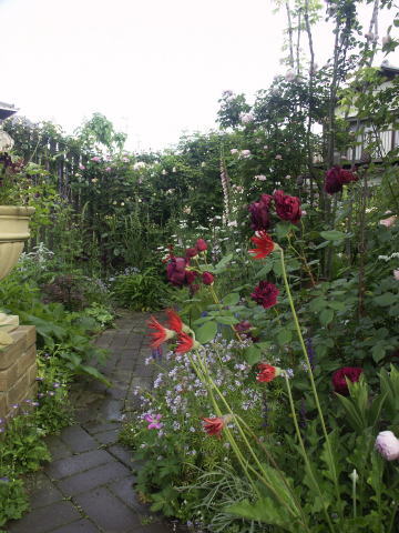 5日のお昼ごろから8日までの4日間、雨が降り、宿根草の形が乱れたり、バラのお花は水を含んできれいな色で無くなったり