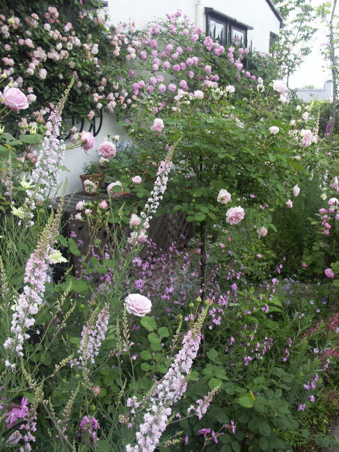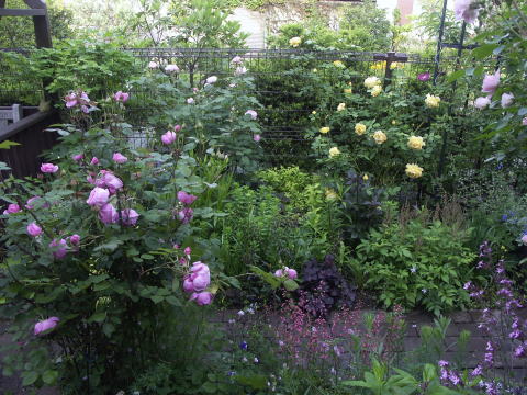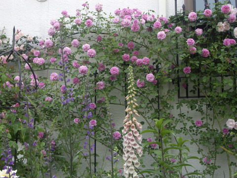 ![]() | 西側の壁が華やかになりました コーネリア ラベンダーラッシー ERピーチブロッサム 咲いたばかりの濃い目の色もきれいですが 咲き進んだ優しい色合いもきれいです こんなふうに一緒に咲くのは 今の季節だけ その後は それぞれ返り咲きます 今はジキタリスアプリコット オルラヤホワイトレスがいっしょに咲いていますが この後は百合やスカビオサが咲く準備をしています 周りの花が変わると 2番花は また違う表情を見せる 華やかなこの季節も 次の季節に咲く花も いつの季節も 楽しみです |