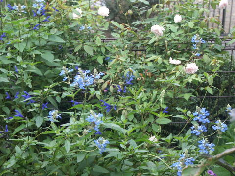 ![]() メドセージとボックセージ(薄ピンクのバラはオドラータ) | |