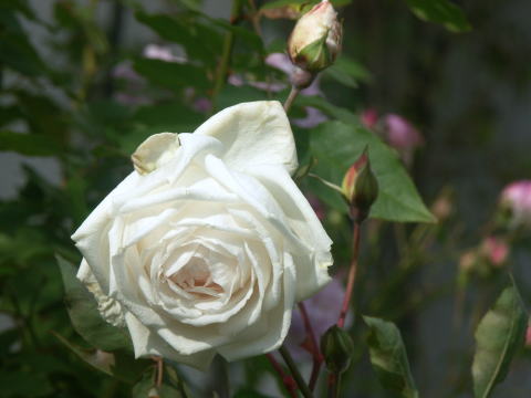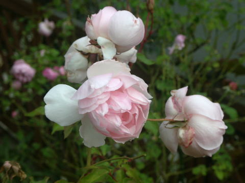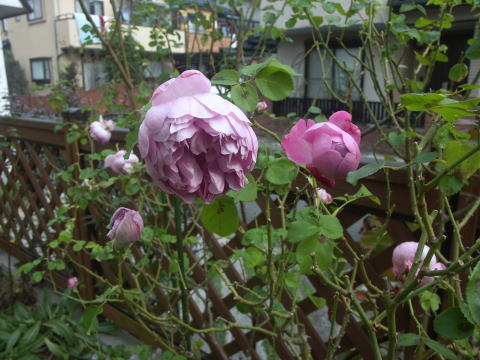 残り花を楽しみながら、少しづつツルバラの誘引を始めました