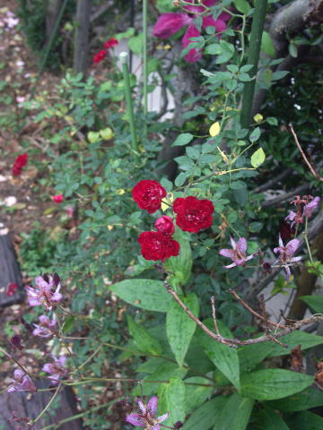 ![]() | バラはレッドキャスケード ホトトギス クレマチスはアラーナ |