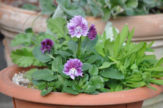 殺風景になった庭で温かさを感じさせてくれる鉢花
