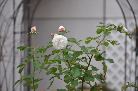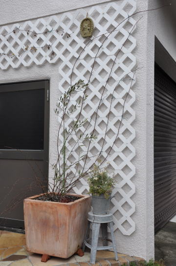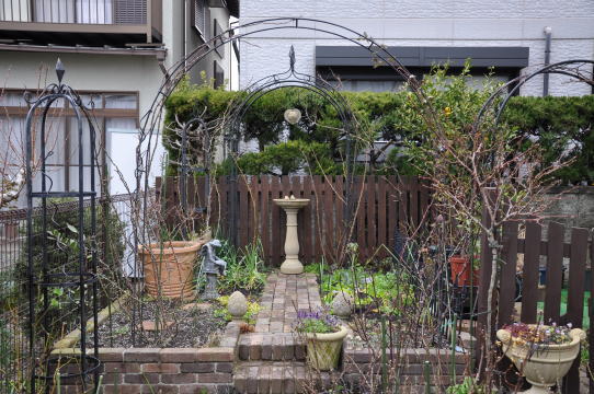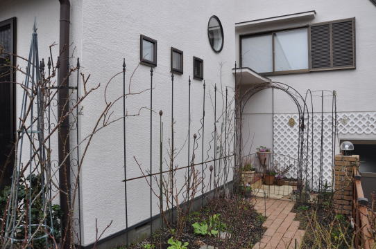 ![]() ![]() クレマチスのアフロディーテエレガフミナと這沢がバックの壁側で咲き ブラッシュノアゼット、マダムブラヴィ、マダムフィガロが手前に咲く予定 そして、ブレイリーNO2がアーチに誘引してあります | |