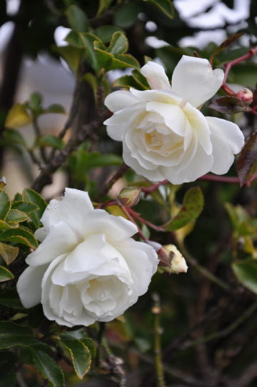 ![]() ヤマボウシの木にはERイブリンとスペクタビリス 後ろの鉄筋アーチにはヒマラヤンムスクとナエマ | |