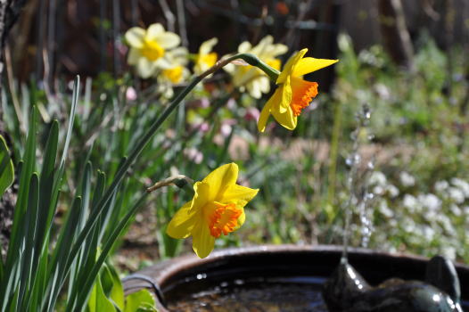 春の色ってなに色?いつもは私の庭にはあまりない色だけれど春と言えば黄色、それから桜色