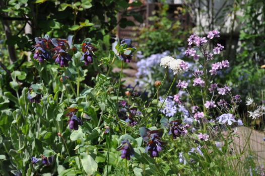 ![]() | 東の小道 フロックスデバリガータが 咲き始めた アンチューサの青が お互いを引き立てる |
