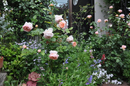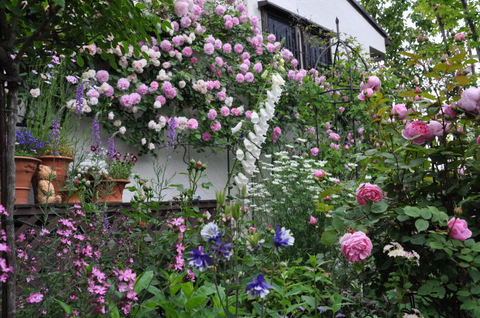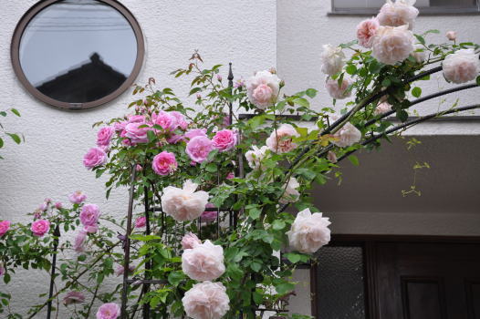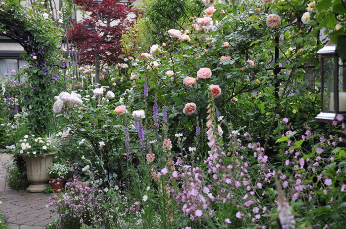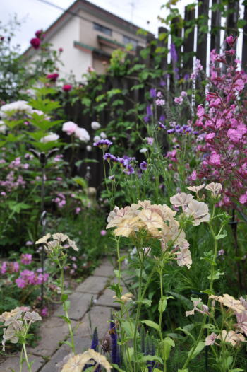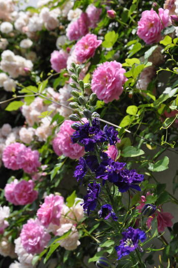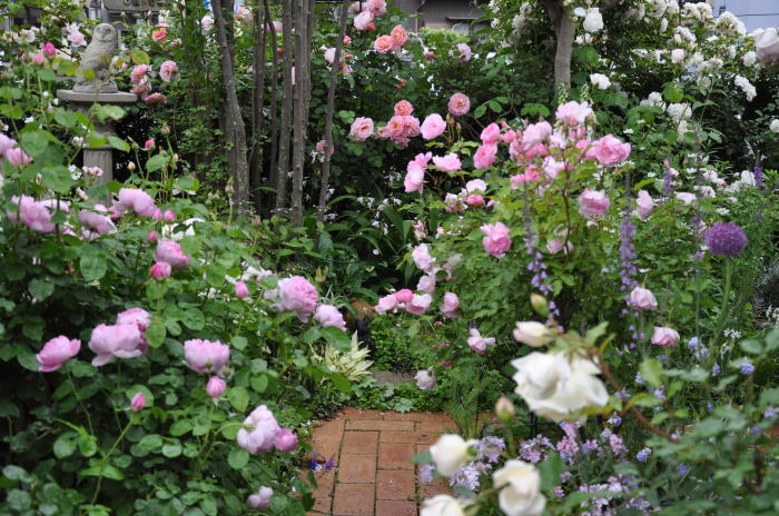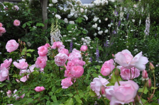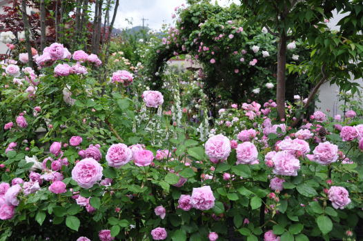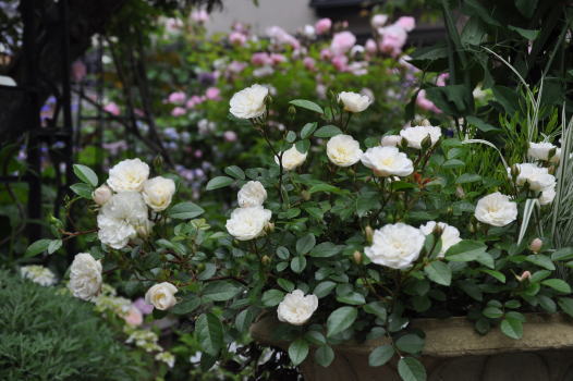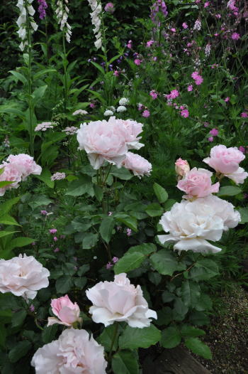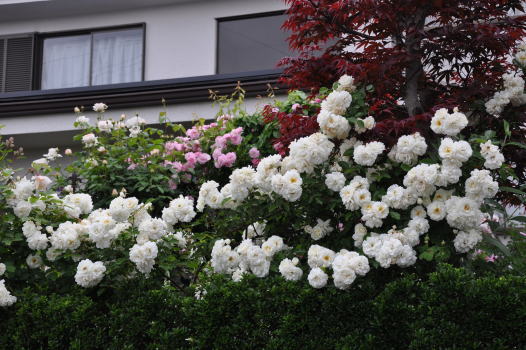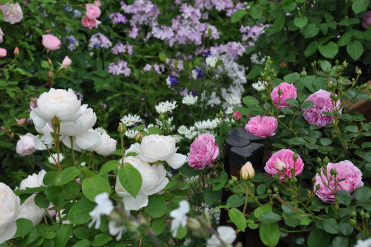 ![]() ![]() | 白花は ER グラミスキャッスル ピンクのバラは ブルボン ルイーズオディエ ピンクの花はフロックスピロサ |