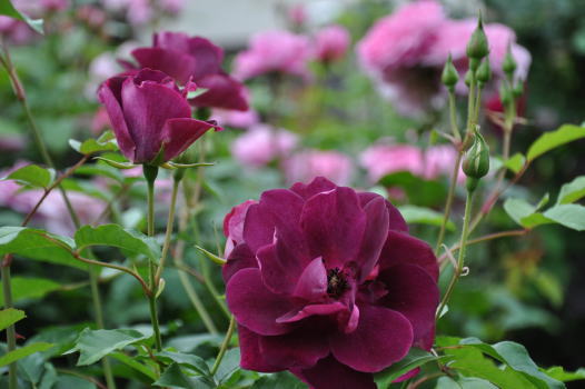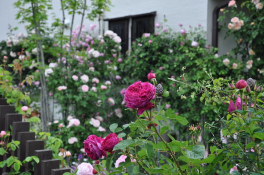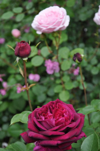 ![]() 赤バラはERザ・プリンス ピンク色のバラはセントエセルブルガ | ![]() 前はER ザ・リーブ その後ろはスタンダードグラニー |