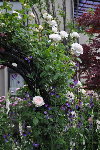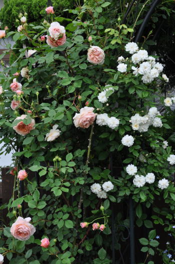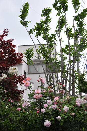 ![]() | 梅の木に誘引してあるバラは ハルガスミ その横は ER ロードリーオベロン |