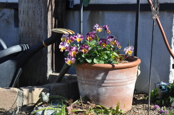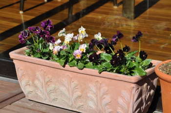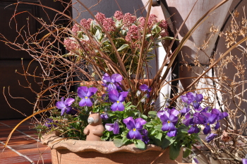 でも、コンテナに植えたビオラ達が温かみをくれます