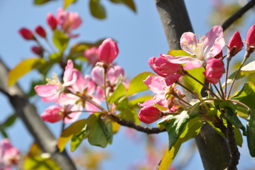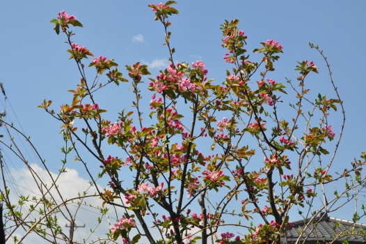さくらんぼのような蕾、可愛い花色の実カイドウ