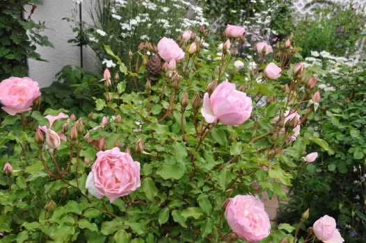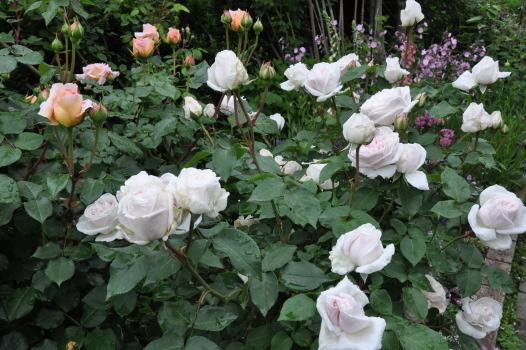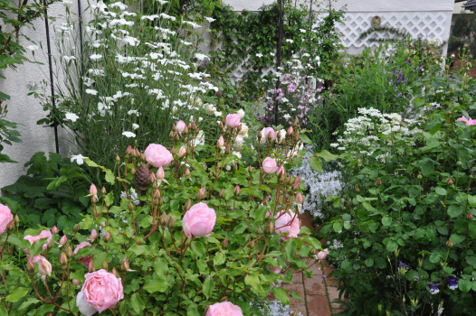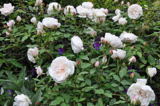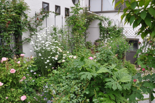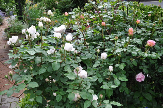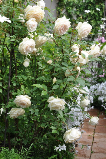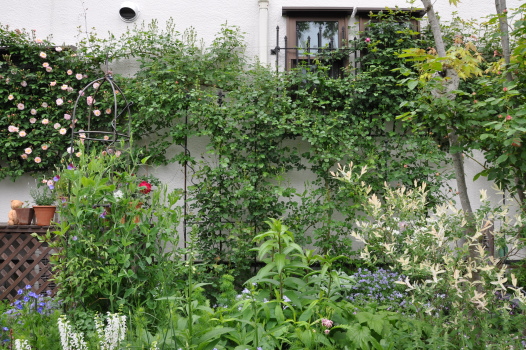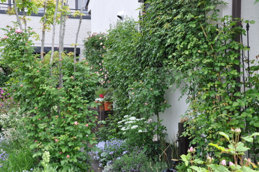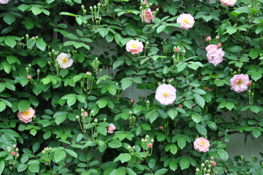 ![]() ![]() | ![]() Mme Julie Lassen 西側の壁のようすです 緑の壁が もうすぐバラの花の壁に! |